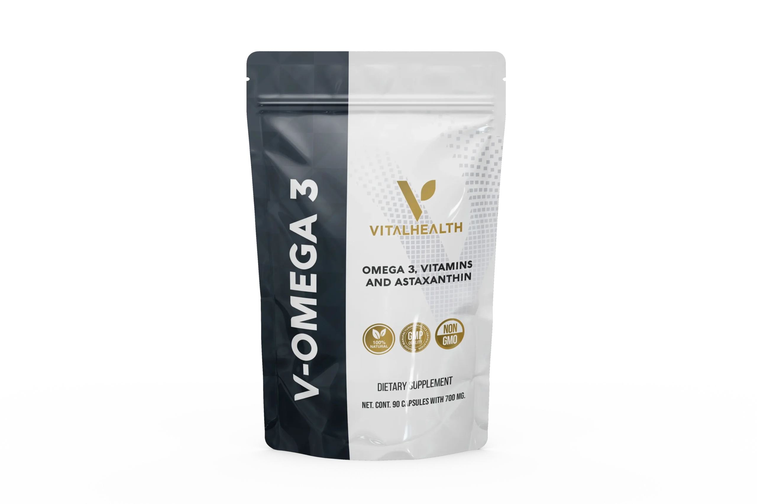 Aceite de salmón salvaje de Alaska, Aceite de annato (Bixaorellana), Delta-Tocotrienoles, Gama-Tocotrienoles, Vitamina A (Palmitato de Retinol), Vitamina D (Colecalciferol D-3), Astaxantina, Gelatina de Pescado, Glicerina y Agua purificada.